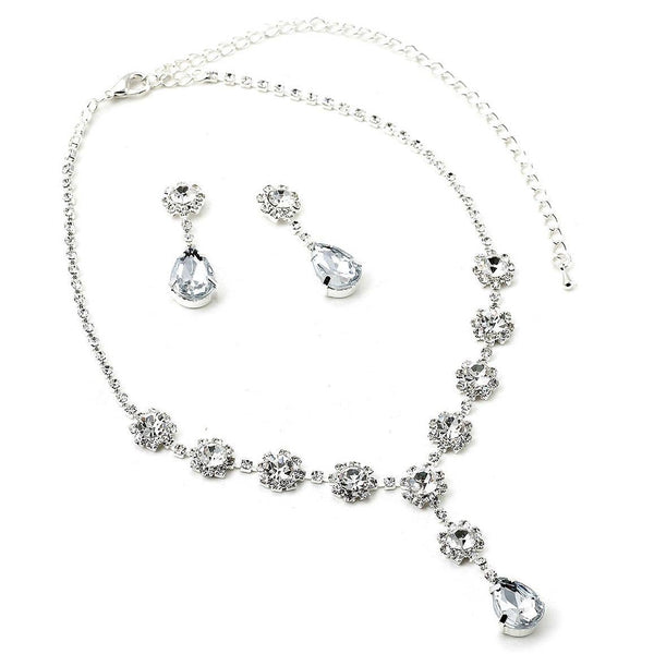 Bridal Wedding Y Shape Teardrop Dangle Necklace Earrings