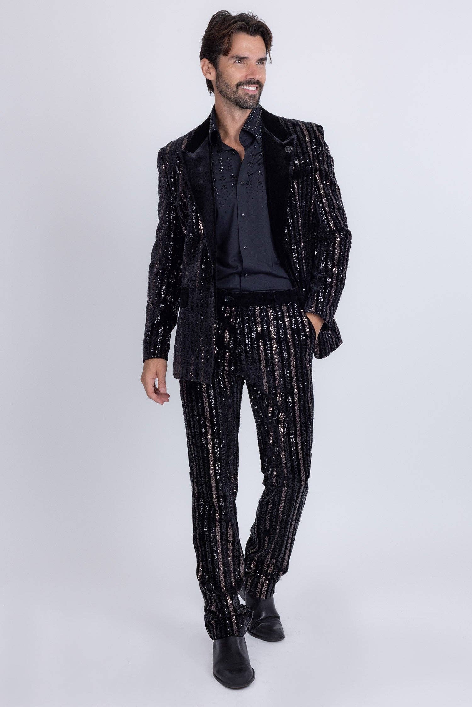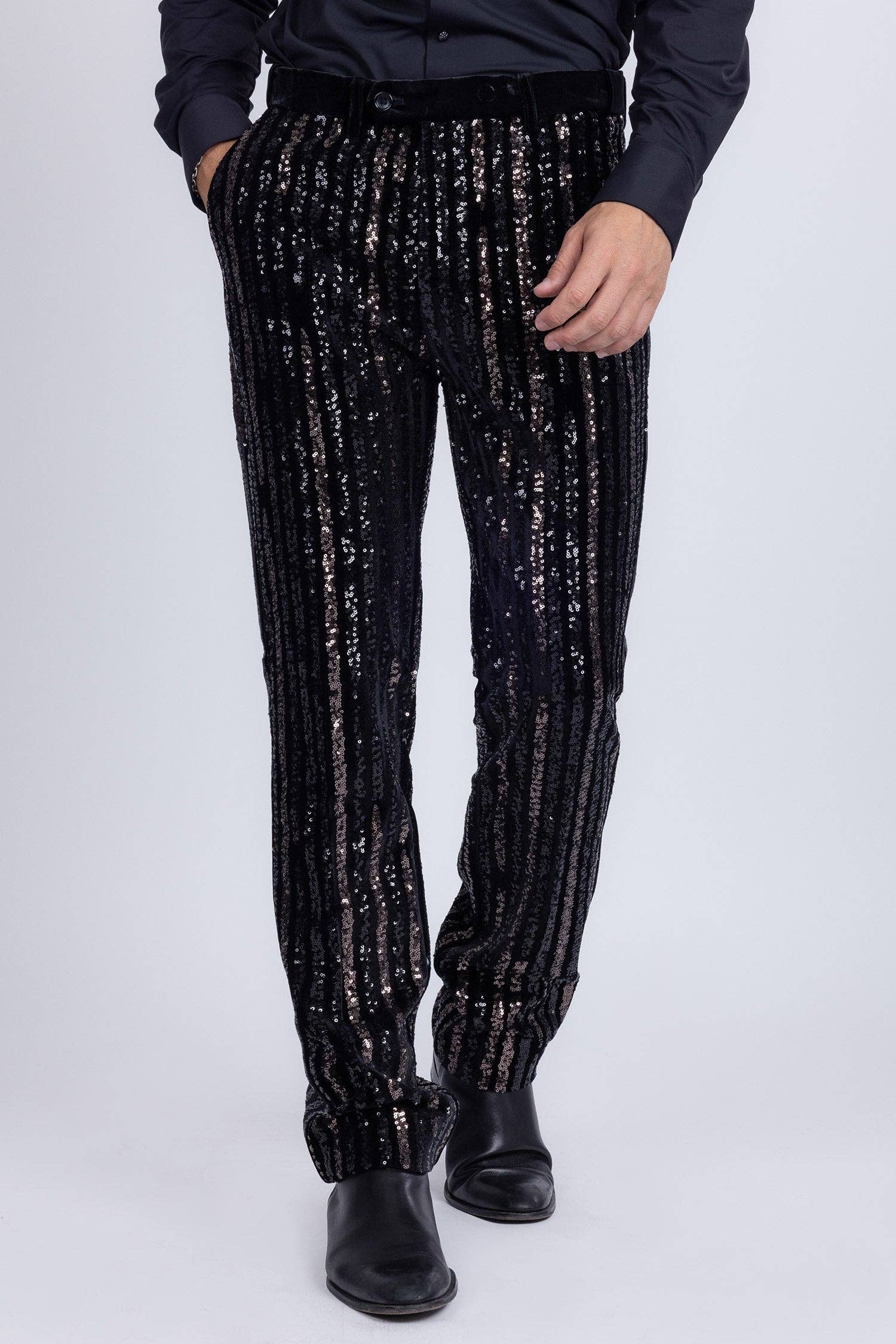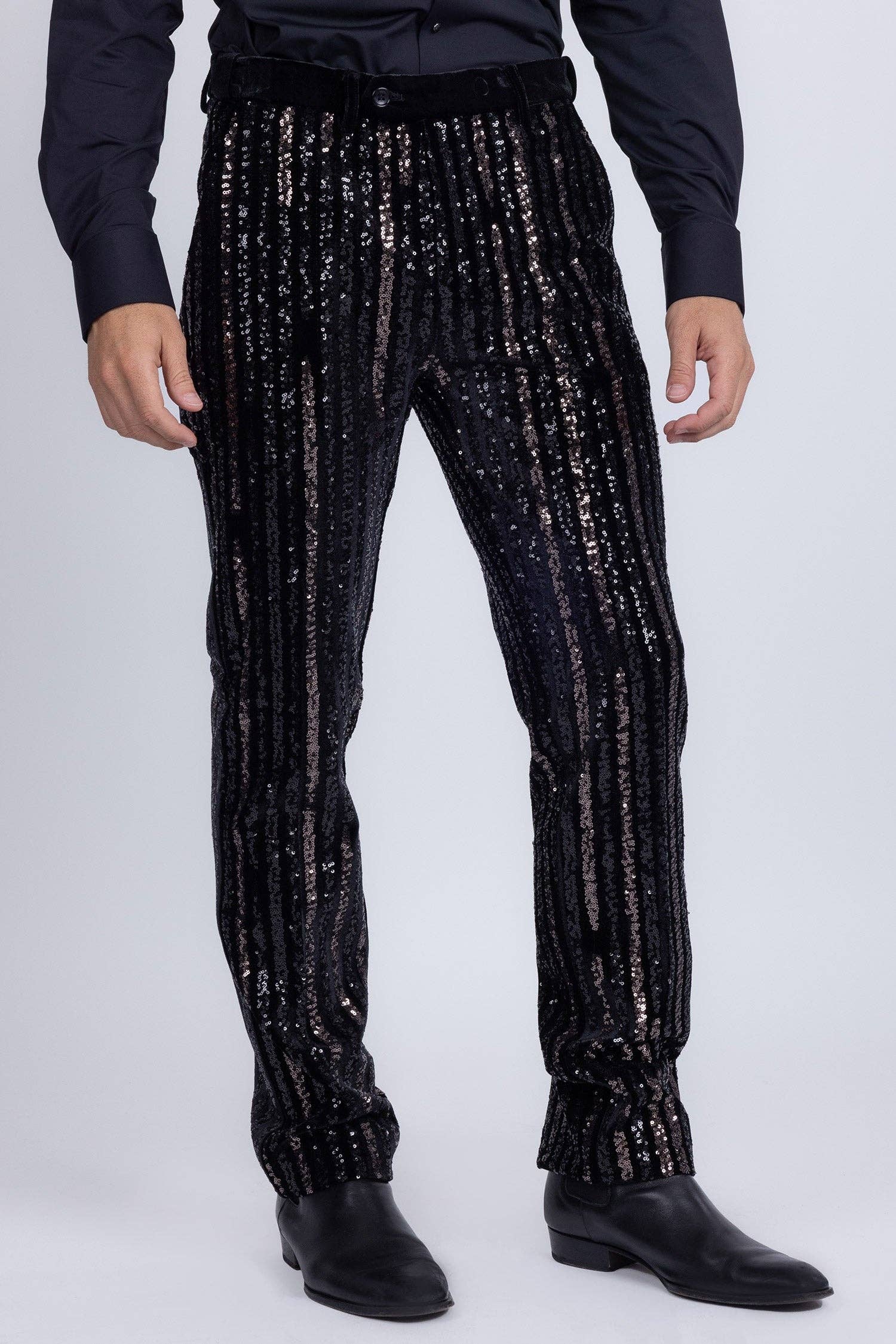 Details: * Original design * Sequins * Slim Fit * Adjustable waist * Button and zipper closure * Casual and formal * Lightweight fabric * Stretch * Inseam 32 inches Fabric & Care: * 94% Regenerated Fiber 6% Spandex * Dry Clean Only